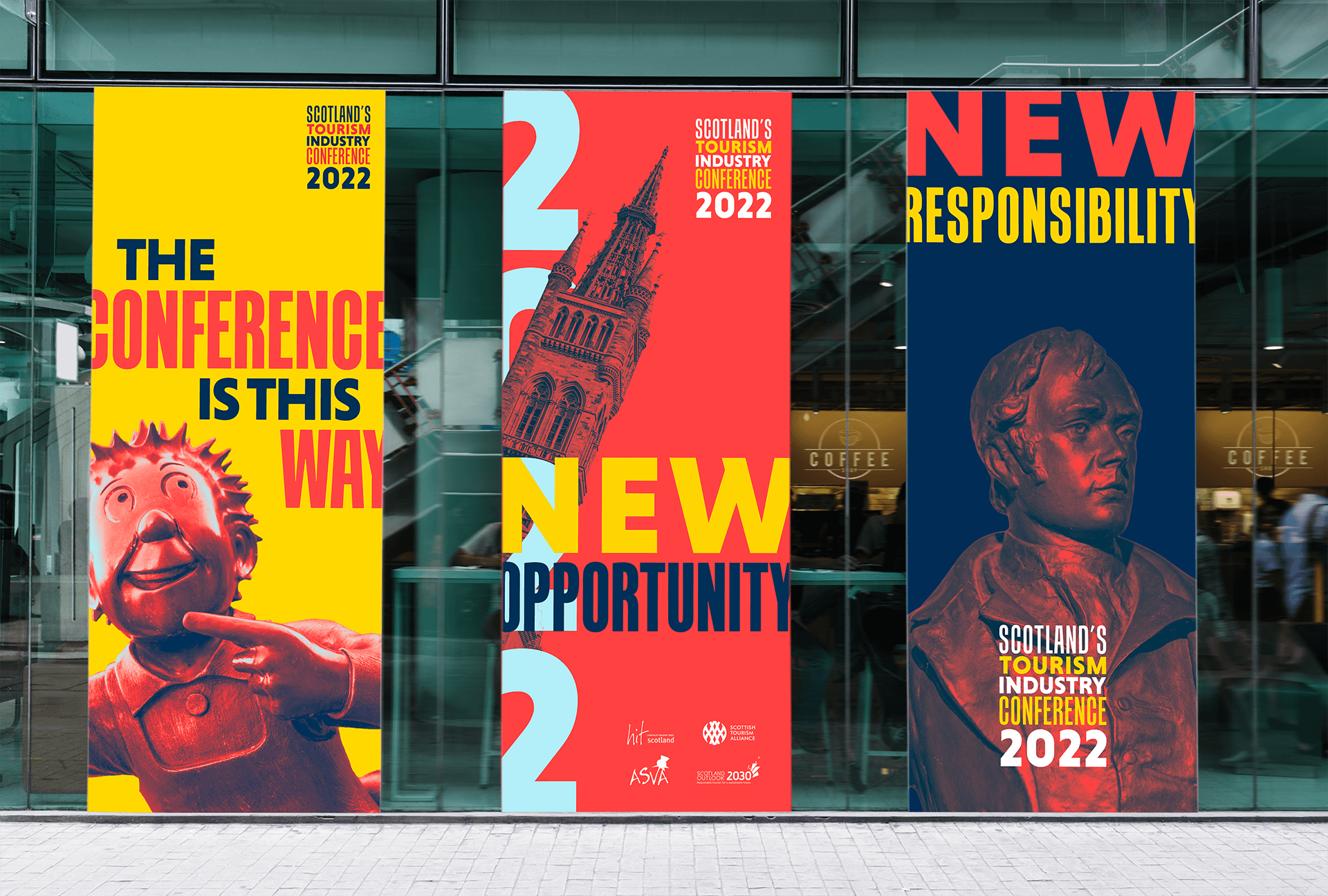 An example of how the visual language can be expressed on a kinetic billboard. A really striking way to advertise the event.